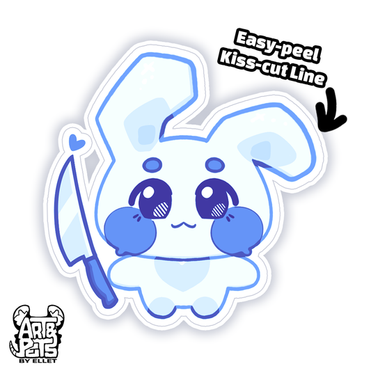 Knife Pets (Blue Bunny), Waterproof Die-Cut Sticker