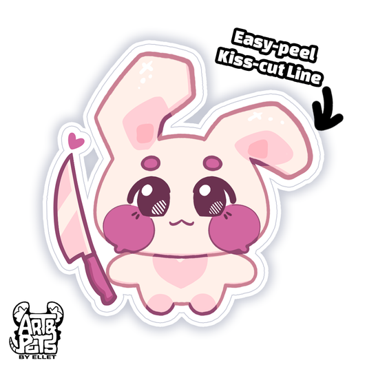 Knife Pets (Pink Bunny), Waterproof Die-Cut Sticker