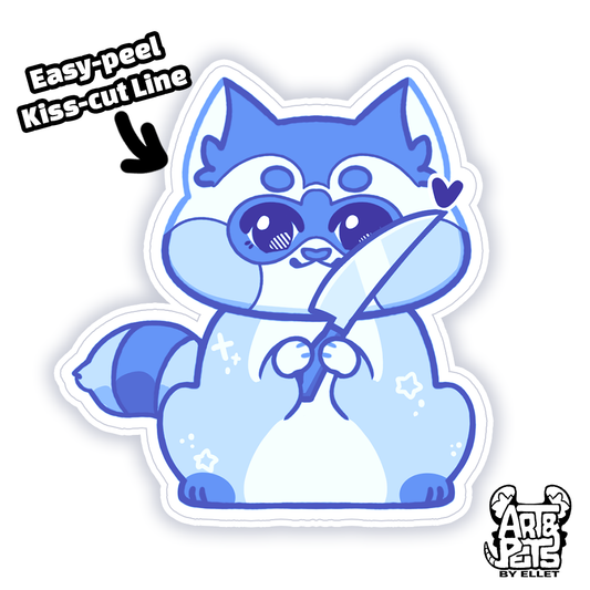 Knife Pets (Blue Raccoon), Waterproof Die-Cut Sticker