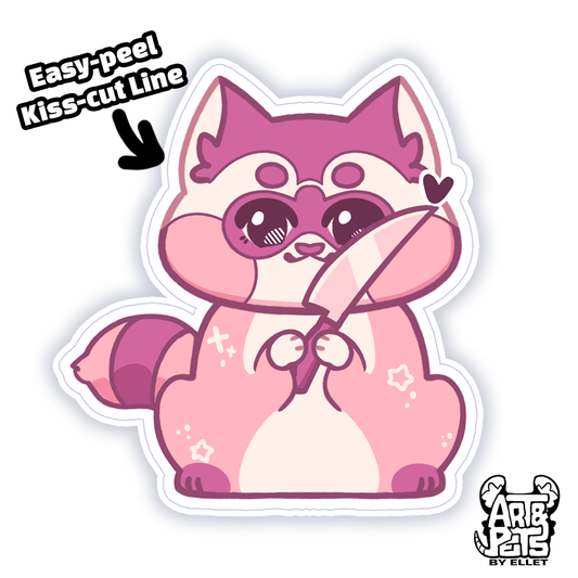 Knife Pets (Pink Raccoon), Waterproof Die-Cut Sticker